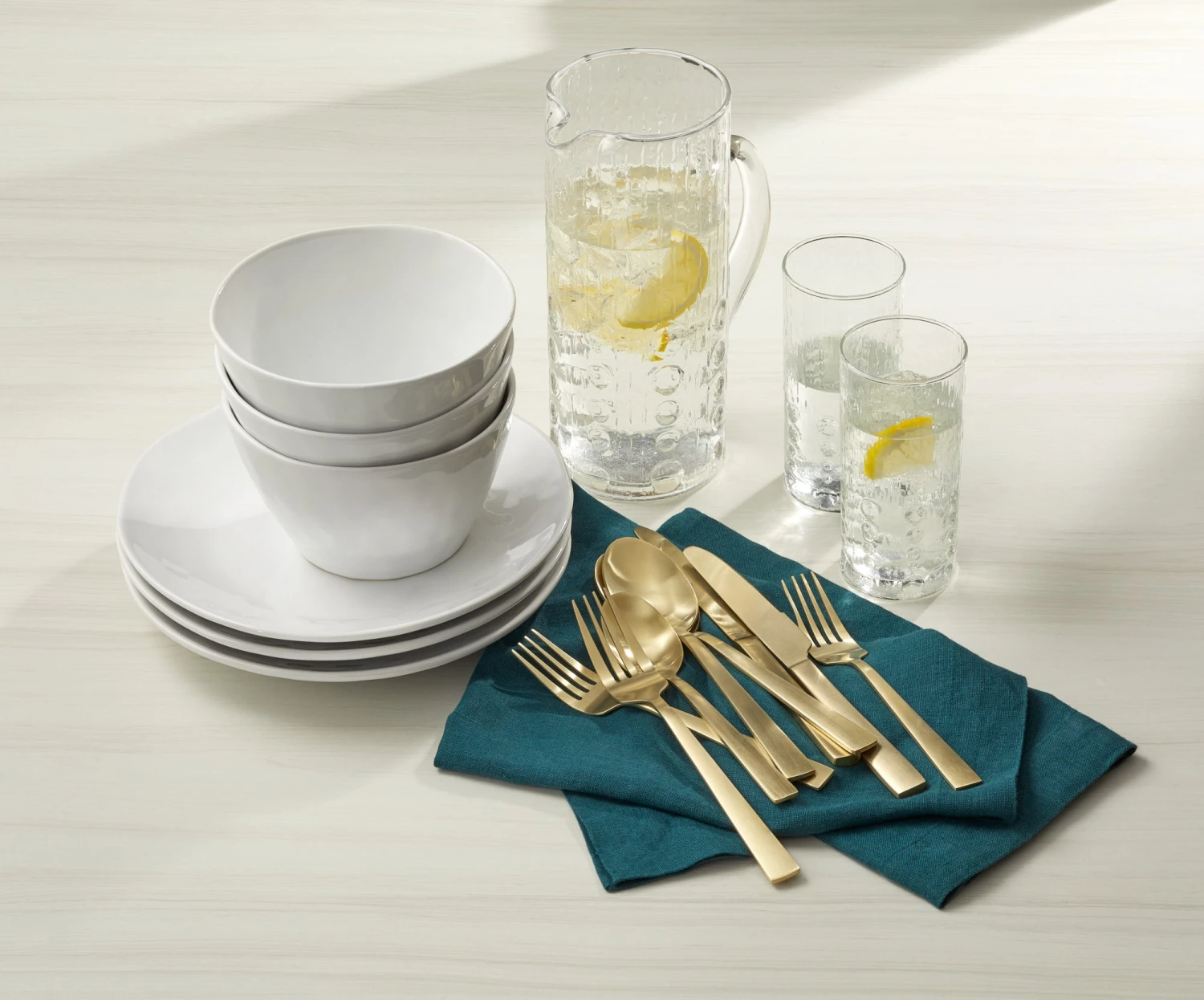 - Set includes 4 Dinner Knives, 4 Salad Forks, 4 Dinner Forks, 4 Dinner Spoons, and 4 Teaspoons